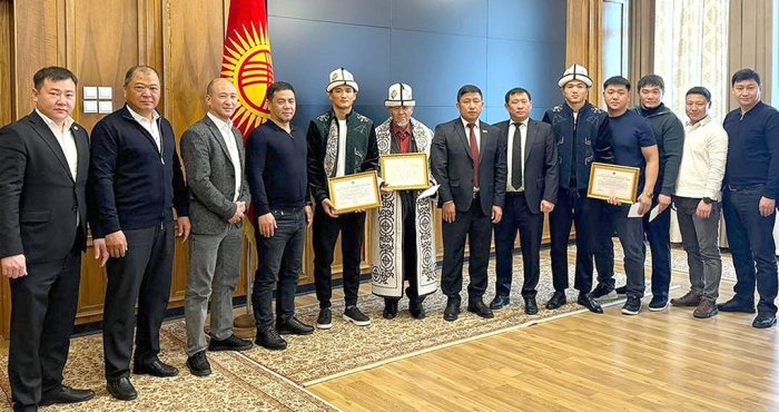 Как сообщает пресс-служба Жогорку Кенеша, в ходе встречи депутаты поздравили спортсменов с успешным выступлением. Особые слова были адресованы Омару Ливаза, завоевавшему серебряную медаль чемпионата мира по боксу, а также Ихтияру Нишонову, ставшему бронзовым призером.