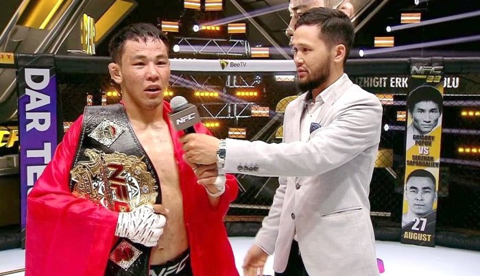 Как сообщает Портал karate.ru, в основном карде турнира дрался боец из Кыргызстана Айжигит Эркебай уулу (8-2). Он вышел в октагон с Вадимом Леутиным из России (0-2) и одержал победу техническим нокаутом первом раунде.