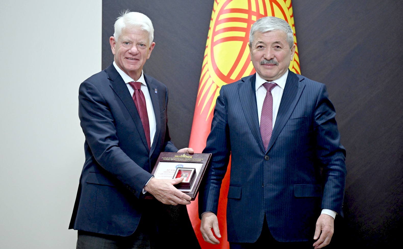 В завершение встречи за значительный вклад в развитие международного хоккея Франц Рейндль и Клифтон Роттесли награждены Почетными грамотами кабмина Кыргызской Республики.