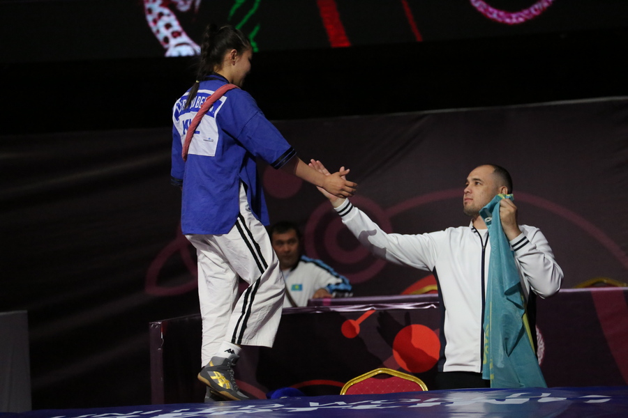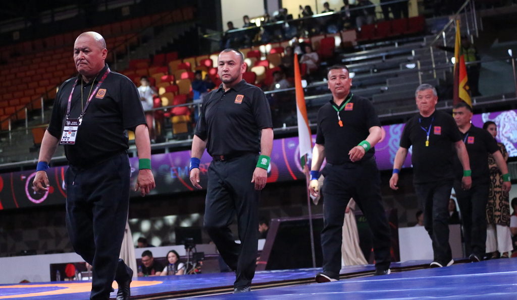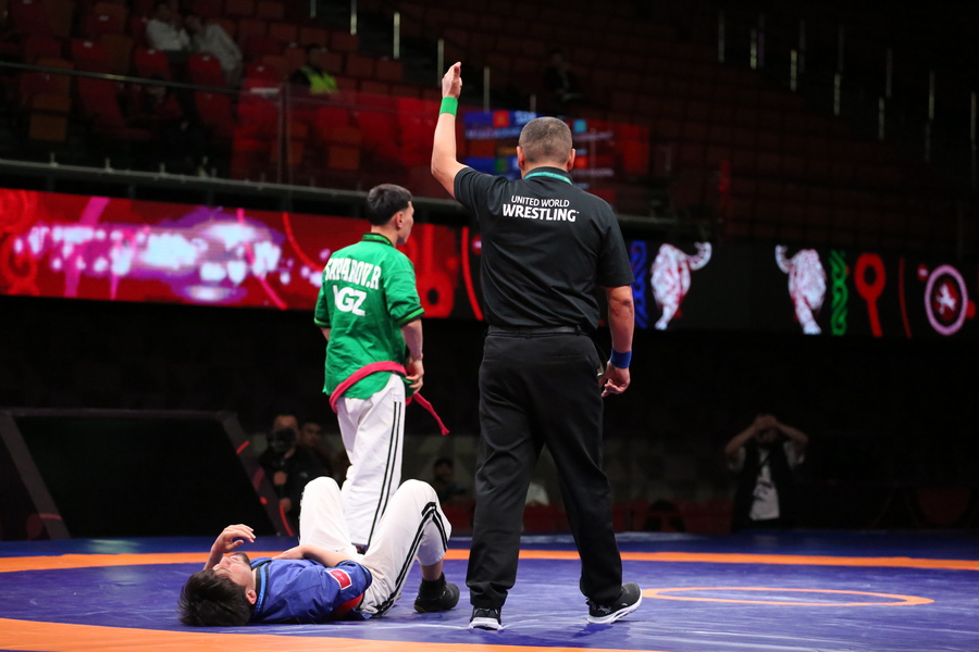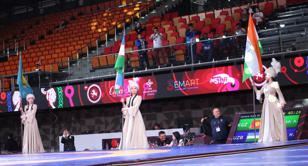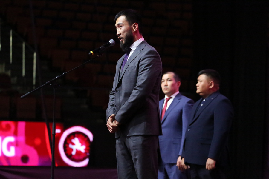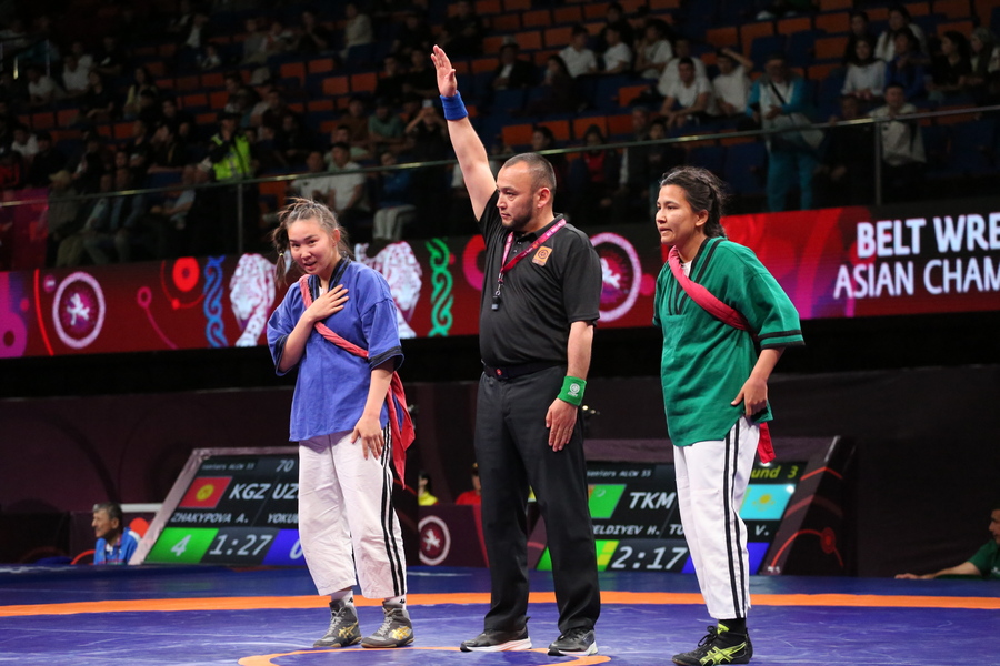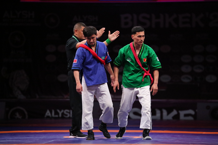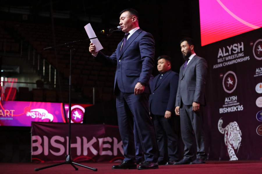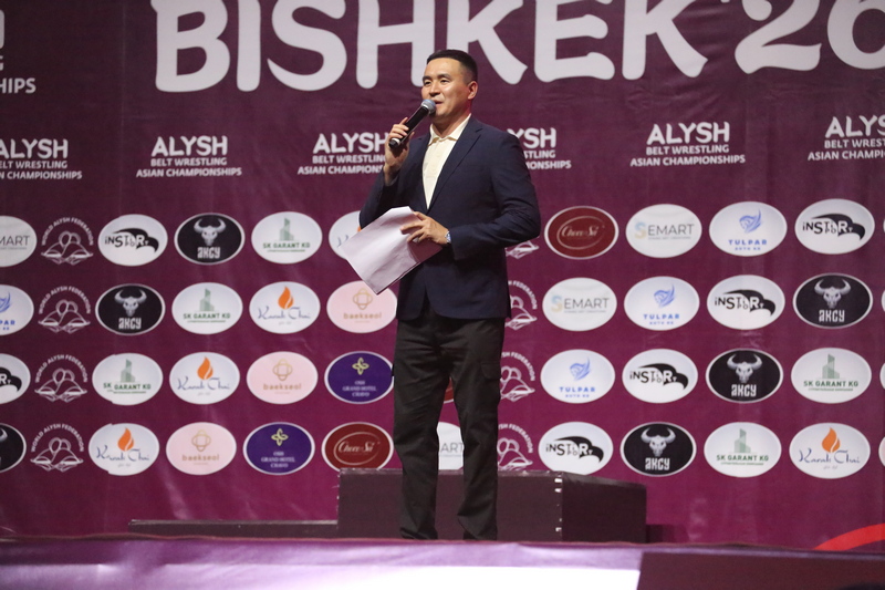 Напутственные слова участникам соревнований сказали директор Государственного агентства физической культуры и спорта при Кабинете Министров Кыргызской Республики Урмат Асанбаев и глава Национальной федерации борьбы на поясах Алыш Адилет Асылбеков.