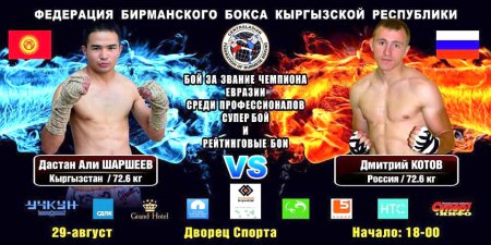 29 августа в столичном Дворце спорта им. Кожомкула состоится бой за звание чемпиона Евразии по бирманскому боксу среди профессионалов.