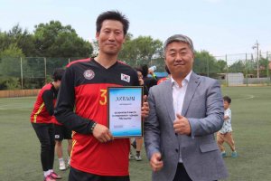 И вот, наконец, на поле вышли команды местных и зарубежных корейцев, которые сразились в товарищеском матче по футболу. Преимущество было у хозяев турнира, и в ворота противника было забито семь голов, и все-таки один из них гости смогли отквитать. Игра завершилась со счетом 7:1. Но как объявили организаторы – победила дружба!