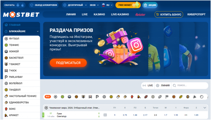 Букмекерская контора Мостбет принимает ставки через оффшорный сайт mostbet.com, доступ к которому можно получить через зеркало https://superbets.guru/mostbet-review/. Зеркало сайта размещается в сети администрацией Мостбет, поэтому, абсолютно безопасно для работы.