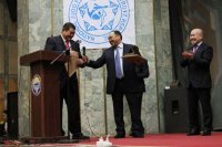 - Сегодня мы подводим итоги уходящего года, - сказал в приветственной речи президент федерации дзюдо Кыргызстана Ырысбек Мааткабылов, - достижения, безусловно, были, но сейчас руководство федерации ставит перед собой еще более конкретные цели - участие наших мастеров дзюдо во всех международных соревнованиях в начале нынешнего олимпийского цикла. Также я хотел бы выразить огромную благодарность нашим спонсорам, ведь без их поддержки наши спортсмены не смогли бы выезжать на турниры, а также директору Госагентства Мурату Саралинову и представителям японского общества сотрудничества JICA. Одним словом, спасибо всем, кто болеет за отечественное дзюдо и помогает в развитии этого вида спорта в нашей стране!В свою очередь, Мурат Саралинов поздравил спортсменов и тренеров, напомнив при этом, что в наступающем году впереди у них несколько важных стартов: Азиатские Игры, юношеская Олимпиада, чемпионаты континентального и мирового уровня, а также серьезные международные турниры.