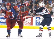 Сборная России примет участие в третьем Кубке мира. В 1996 году наша национальная команда в группе с Канадой, США и Словакией заняла третье место, после чего разгромила финнов в четвертьфинале. А вот американцам россияне проиграли дважды с одним и тем же счетом 2:5. Сначала в группе, а затем и в полуфинале. Спустя восемь лет сборная России, возглавляемая Зинэтулой Билялетдиновым, с тем же составом участников заняла второе место на групповом этапе, но в четвертьфинале вновь оступилась в матче с американцами. Если вспомнить, что двумя годами ранее сборная России проиграла звездно-полосатым в полуфинале Олимпиады, можно сказать, что этот соперник стал для нашей команды поистине неудобным. На этот раз российская команда избежит встречи с американцами. По крайне мере на групповом этапе. Сборная России попала в группу B, где ее соперниками станут финны, шведы и сборная молодых североамериканских звезд. Свой первый матч на Кубке мира подопечные Олега Знарка проведут 18 сентября против «Тре крунур». Любопытно, что главным тренером шведов на турнире будет Рихард Гренборг - тот самый, с которым у Знарка был конфликт на чемпионате мира в Минске.
