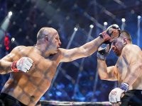 Днем раньше Александр Шлеменко снял все вопросы в противостоянии с Вячеславом Василевским, поймав последнего на фирменную «штормовую гильотину». Несмотря на это, Вадим Финкельштейн разглядел в этой победе и повод для третьего боя, но что делать – промоутер есть промоутер. Куда более интересно узнать, состоится ли бой омича с Рамазаном Эмеевым – вот над чем президенту М-1 действительно стоит поломать голову. Что касается самой победы Шторма, то он не лукавил, говоря о стойкой приверженности своей тактике, но приятно удивил тем, что был готов к проходам в ноги и грамотно возвращался в стойку. Возможно, именно это он и требовал от Александра Сарнавского, который три раунда промучился под Мурадом Мачаевым. «А не жалко ли голову?» - вот о чем хочется спросить Александра, глядя на полученные им травмы. Но он вновь бы сказал, что радеет за зрелищность, в то время как Фрейд сослался бы на бессознательное влечение к смерти, в котором мы можем почувствовать себя живыми, лишь разрушая самих себя. Так или иначе, здоровья Александру. Тезка Шлеменко Александр Волков тоже принял головой несколько тяжелых ударов, но довел дело до победы над Аттилой Веем довольно быстро, впервые защитив чемпионский титул М-1.