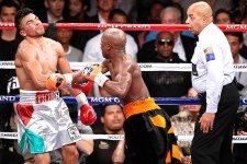 Тот извинился перед Мэйуэзером и даже обнял его. Как только рефери возобновил бой, Ортис решил извиниться еще раз, поднял руку и тут же пропустил жесткий левый боковой. Пошатнувшись, попытался пожаловаться судье и пропустил еще несколько ударов, которые отправили его в нокаут. «Правил я не нарушал. Надо просто защищать себя в любой момент боя»,-оправдывался после поединка Мэйуэзер. Формально не придерешься.
