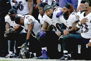 Перед очередными матчами НФЛ игроки целыми командами бойкотировали исполнение гимна США, оставаясь в раздевалках. Другие в знак протеста становились на одно колено, брали друг друга за руки или под руки, некоторые поднимали вверх сжатые кулаки (black power salute - знаменитый жест, примененный на ОИ-1968 чернокожими американскими бегунами Томми Смитом и Джоном Карлосом) и даже разминались.