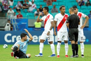 Когда-то нам говорили, что в таких спорных ситуациях - когда «вне игры» -приоритет будет отдаваться атакующей команде. В этом случае нужно было поощрять Уругвай, который пытался 90 минут играть в футбол. Но судьи становились на сторону бесцветного Перу, вся игра которого сводилась к стоянию у своей штрафной. Эта команда вообще в трех матчах на Кубке Америки не смогла забить гола (Венесуэла 0:0, Бразилия 0:5, Уругвай 0:0). И она в полуфинале. А Уругвай плачет (Луис Суарес не реализовал самый первый 11-метровый) и едет из Бразилии домой.