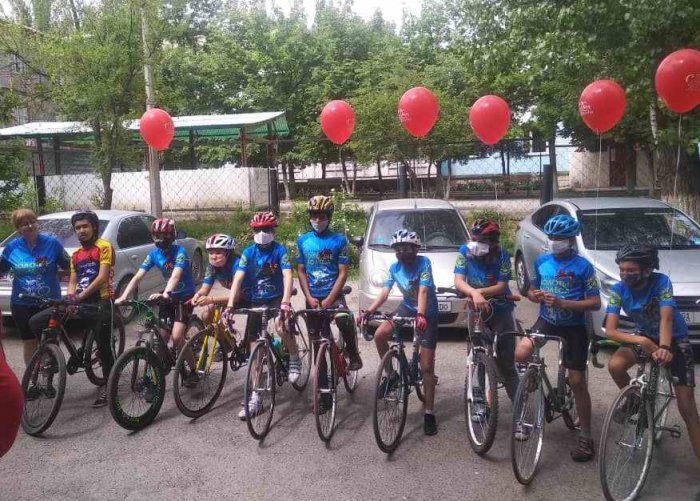 Юные воспитанники клуба в сопровождении своего тренера Николая Дядичкина проехали по столичному микрорайону «Аламедин-1», поздравив всех горожан с праздником. В конце акции были запущены воздушные шары.