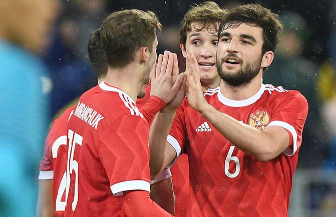 Полузащитники: Зелимхан Бакаев («Спартак»), Роман Зобнин («Спартак»), Юрий Газинский («Краснодар»), Денис Черышев («Валенсия»), Антон Миранчук («Локомотив»), Юрий Жирков («Зенит»), Андрей Мостовой («Зенит»), Магомед Оздоев («Зенит»), Алексей Ионов («Ростов»), Даниил Фомин («Динамо»), Далер Кузяев (без клуба);
