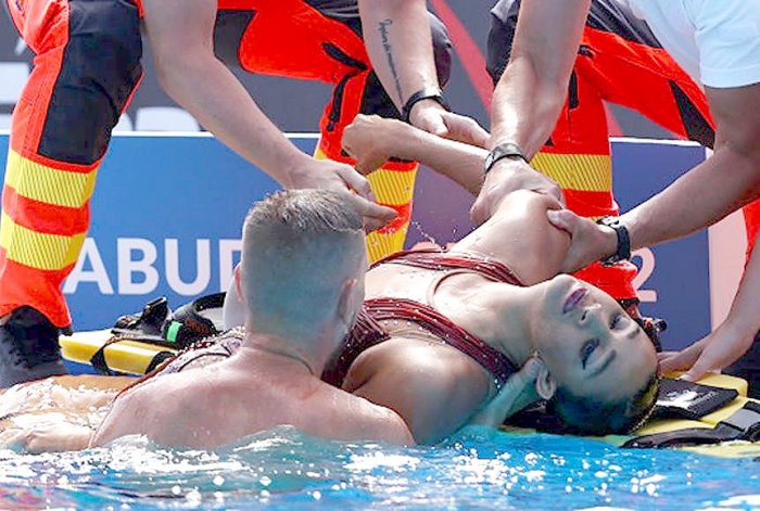 25-летняя Анита Альварес, двукратная олимпийская чемпионка, после завершения своей сольной произвольной программы, неожиданно пошла ко дну бассейна, находясь без сознания.