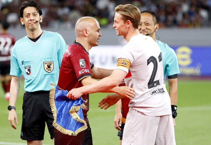 Испанский футбольный клуб «Барселона» одержал победу в товарищеском матче с японским «Виссел Кобе», за который выступает бывший футболист каталонцев Андрес Иньеста.