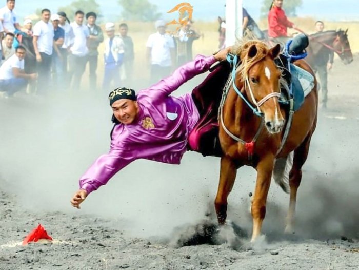 Тыйын энмей - доставание монеты с земли на скаку. Этот вид национальных игр является разновидностью джигитовки.