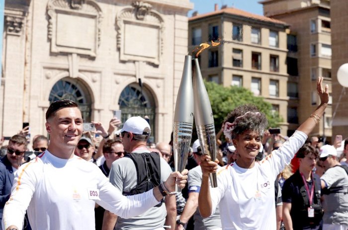Олимпийский огонь прибыл во Францию из Греции 8 мая. Он был доставлен в Марсель на борту старинного парусника «Белем». Эстафета олимпийского огня по территории страны продлится более двух месяцев и завершится 26 июля на церемонии открытия Игр на стадионе «Стад де Франс». За это время олимпийский огонь должен преодолеть расстояние в 12 тысяч километров.