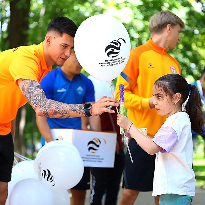 Как сообщает пресс-служба КПФЛ, представители КПФЛ и футболисты прогулялись по бульвару Эркиндик и раздали шарики и мороженное детам.