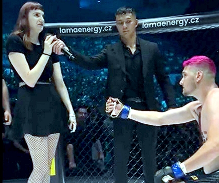 Чешский боец смешанного стиля (ММА) Лукас Буковаз сделал предложение девушке в октагоне на турнире «Битва звезд», проходившем в Чехии. Об этом сообщает Daily Mail.