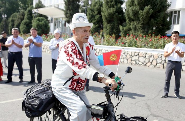Накануне на центральной площади города Ош прошли проводы 74-летнего Мамыта Таштанова, который намерен проехать 2 тысячи 16 километров и попасть на Всемирные Игры кочевников в Астане.