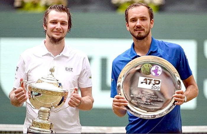Казахстанский теннисист Александр Бублик завоевал титул на турнире категории ATP-500 в немецком Галле, обыграв в финале россиянина Даниила Медведева - 6:3, 7:6 (7:4).