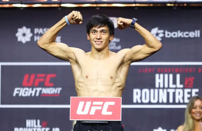По информации инсайдера, поединок состоится в «Этихад Арене». Соперником представителя Казахстана станет американец Митч Рапосо, который имеет рекорд 9-3 (0-2 в UFC). Бой пройдёт в наилегчайшей весовой категории.