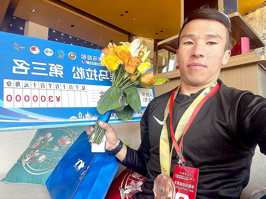 Еще один кыргызстанец - Аман Момуналиев бежал марафонскую дистанцию (42,2 км) и занял 12-е место.
