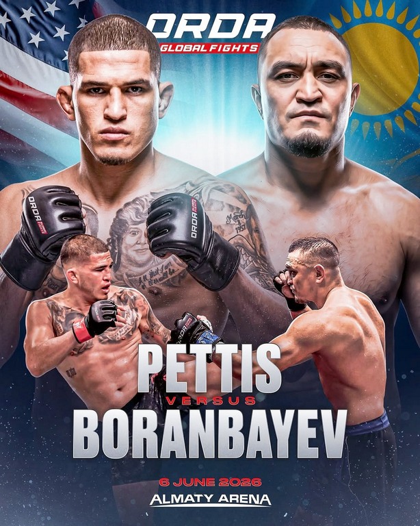 В рамках шоу OGF 01 в Алматы 6 июня Боранбаев сразится против бывшего чемпиона UFC в лёгком весе, американца Энтони Петтиса (25-14). Об этом объявила пресс-служба промоушена.