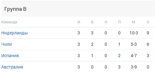 Группа B: Испания, Голландия, Чили, Австралия