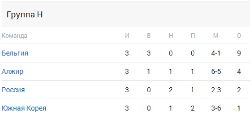 Группа H: Бельгия, Алжир, Россия, Корея
