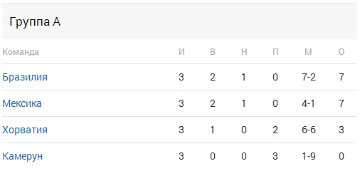 Группа А: Бразилия, Хорватия, Мексика, Камерун