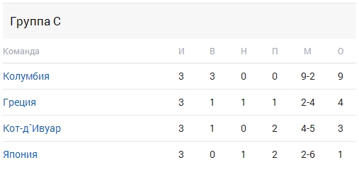 Группа C: Колумбия, Греция, Кот-д'Ивуар, Япония