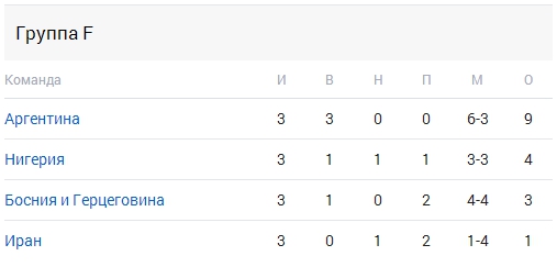 Группа F: Аргентина, Босния и Герцеговина, Иран, Нигерия