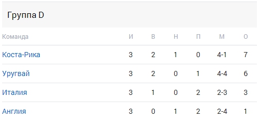 Группа D: Уругвай, Коста-Рика, Англия, Италия
