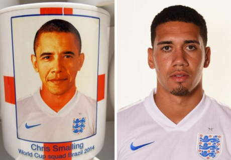 Одна из компаний, которая занимается производством сувенирной продукции, допустила нелепую и крайне курьезную оплошность, поменяв защитника сборной Англии по футболу Криса Смоллинга на президента США Барака Обаму.