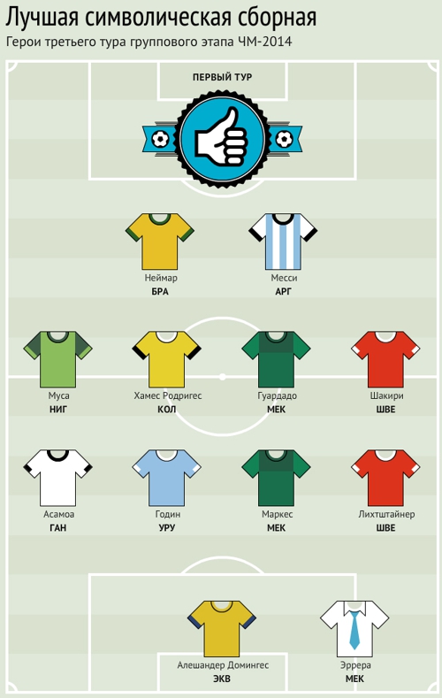 Разговоры о том, что Лео Месси в сборной бледная тень Лео Месси в «Барсе», стали достоянием истории. Если бы не Месси, Аргентина вполне могла из группы и не выйти. Но он тащит на себе всю команду, забивает и стремится ни в чём не уступить Неймару. На дубль бразильца в третьем туре он ответил своим дуплетом.