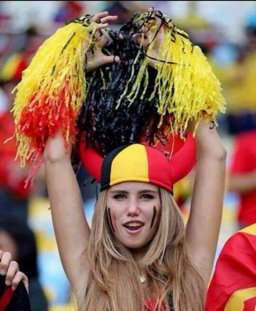 Во время матча группового этапа с участием сборных России и Бельгии фотографы и оператор на стадионе заметили в толпе улыбающуюся белокурую девушку, на которой был наряд, выполненный в цветах национального флага Бельгии, при этом на голове юной дамы оказалась традиционная для фанатов «красных дьяволов» шапка с рожками.