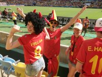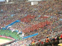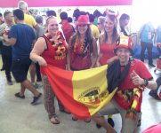 Не лучше настроение и у фанатов сборной Бельгии: совершенно незаметен Маруан Феллайни, шикарная прическа которого легла в основу производства огромного числа париков, которые красуются на головах бельгийских тиффози. Еле волочат ноги и молодые надежды мирового футбола, которым выдавали перед чемпионатом столько авансов: Тоби Алдвервейрелд, Венсан Компани, Аксель Витсель, Дрис Мертенс, Эден Азар! Одним словом, болельщик откровенно скучает, развлекая себя обильными пивными возлияниями - благо, пенного напитка в подтрибунных кранах предостаточно. Работает бесперебойно и туалет, несмотря на постоянную очередь в пару сотен человек.