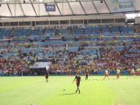 К «Маракане» - еще одному бразильскому чуду - прибываем где-то за час до матча. Некогда крупнейший стадион в мире, видевший игру великих Пеле и Гарринчи и вмещавший на трибуны около двух сотен тысяч зрителей, претерпел к чемпионату мира-2014 ряд значительных изменений. В связи с требованиями ФИФА о наличии только пронумерованных сидений на стадионе был упразднен так называемый «жерал» - стоячие места за воротами и скамейки, где размещались самые бедные болельщики. В итоге, сейчас «Маракана» утратил статус крупнейшего стадиона Южной Америки и не входит даже в топ-50 самых крупных стадионов мира. По данным Википедии, по состоянию на 2014 год вместимость «Мараканы» составляет лишь 78 838 зрителей. Но чертовски приятно ощущать, что, по крайней мере, четверо из них представляют на трибунах Кыргызстан!