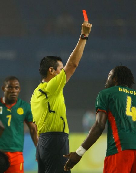 Пожалуй, самый известный случай неадекватного поведения случился с Бикеем в полуфинале Кубка африканских наций-2008. Сборная Камеруна играла с Ганой. На последних минутах матча команда Бикея выигрывала со счетом 1:0. Рядовой случай – медицинская бригада оказывала помощь опытному камерунцу Ригоберту Сонгу. И тут вдруг, ни с того ни с сего, Андре Бикей подбежал сзади к одному из медработников и со всей силы толкнул его на землю. Судья тут же показал Бикею красную карточку, а сам футболист позже объяснил свое поведение игровым недоразумением.