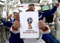 Во время передачи «Вечерний Ургант», гостями которой стали глава ФИФА Йозеф Блаттер, министр спорта Виталий Мутко и бывший футболист сборной Италии Фабио Каннаваро, космонавты вышли в эфир и представили эмблему чемпионата мира 2018 года, который пройдет в России.