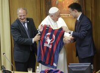 Главная цель соглашения - проведение совместных образовательных акций, участие в образовательной деятельности. В ходе встречи президент "Барселоны" Хосеп Мария Бартомеу подарил Папе Римскому именную футболку клуба с автографами всех игроков команды.