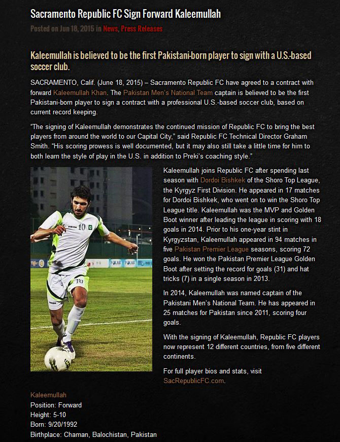 - Подписание Калимуллы - очень большое приобретение для Sacramento Republic FC. Его мастерство забивать голы хорошо известно, и, надеемся, что он принесет большую пользу нашей команде. Хотя пакистанцу все же может потребоваться немного времени для того, чтобы изучить стиль игры в США.