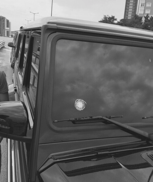 Игрока спасло то, что в автомобиле были установлены пуленепробиваемые стекла.