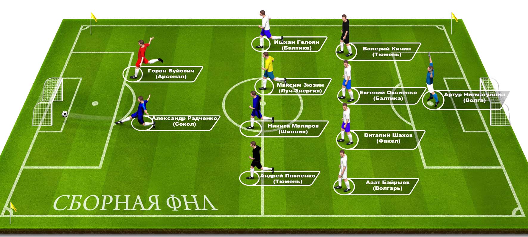 Всего в символическую сборную 12-го тура ФНЛ, как сообщает сайт 1fnl.ru, вошли представители девяти клубов. По два футболиста делегировали в список лучших «Балтика» и «Тюмень» - Евгения Овсиенко и Ишхана Гелояна, а также Валерия Кичина и Андрея Павленко, соответственно.