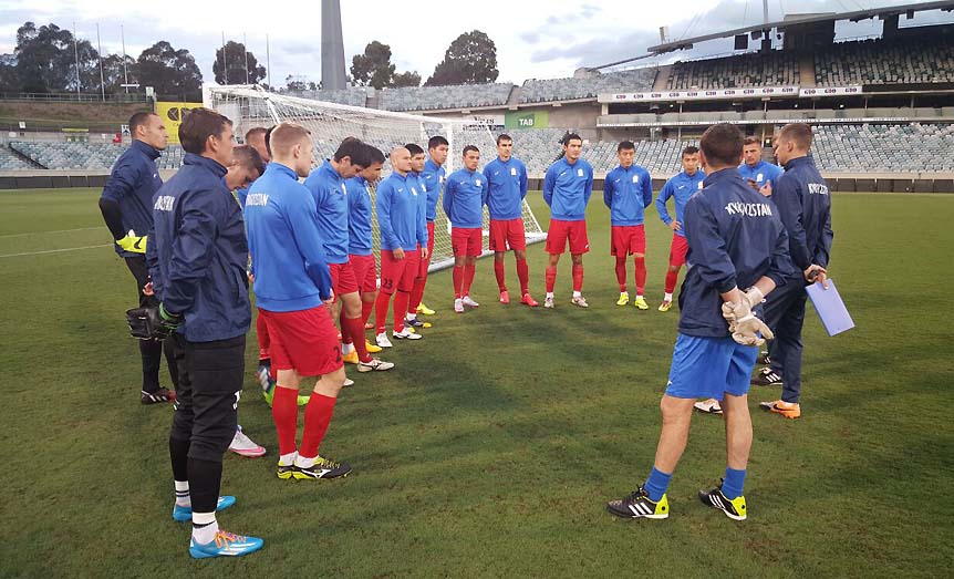 Национальная сборная Кыргызстана по футболу провела предматчевую тренировку на поле стадиона GIO Stadium в Канберре, где завтра, 12 ноября, пройдет поединок отборочного раунда чемпионата мира-2018 Кыргызстан - Австралия.