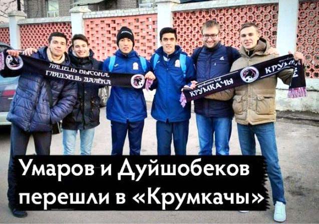 Как сообщает сайт ФФКР, накануне игроки подписали официальный контракт с клубом из Беларуси. Соглашения рассчитаны на один год с возможностью продления еще на год. Дуйшобеков и Умаров тренируются в клубе с самого начала предсезонной подготовки и уже успели сыграть в его составе два товарищеских матча. В прошлом сезоне они выступали за клуб «Абдыш-Ата» (Кант) и стали обладателями кубка Кыргызстана.