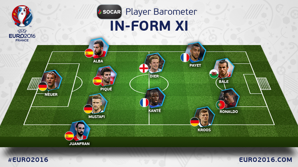 В команду были включены: Нойер – Альба, Пике, Мустафи, Хуанфран – Канте, Дайер, Кроос, Пайет – Роналду, Бэйл.