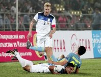 После этого эпизода матч перешел в вялотекущую стадию, которая изредка нарушалась, к примеру, ударом чуть ли не с центра поля в исполнении Даниэля Тэго. Выше... У казахстанцев пару лихих регбийных навесов в нашу штрафную произвел Бауыржан Исламхан, но чтобы их достать, не хватило бы и прыгучести Майкла Джордана.