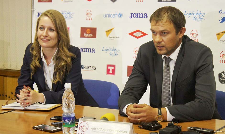 Послематчевая пресс-конференция началась с несмолкаемых оваций и поздравлений, адресованных главному тренеру сборной Кыргызстана Александру Сергеевичу Крестинину.