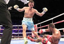 Напомним, в этом году Головкин провел два поединка. В апреле казахстанец одержал победу над обязательным претендентом на пояс IBF американцем Домиником Уэйдом, нокаутировав того уже во втором раунде. В сентябре в Лондоне Головкин досрочно победил чемпиона IBF в полусреднем весе Келла Брука. Поединок был остановлен в пятом раунде после того, как секундант британца выбросил на ринг полотенце.