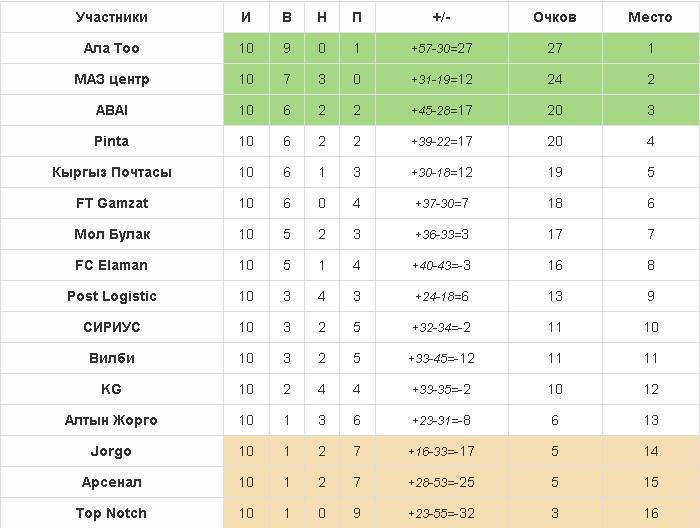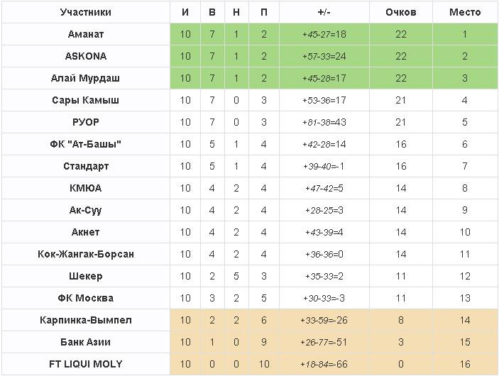 Голы: Акматов Т. (3), Ахметов А., Батаканов А., Джумабаев А. (2), Маталипов Т. (2), Молдоисаев И. (3) - Алманбетов А.